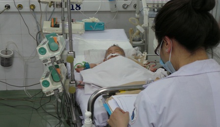 Qua quá trình thăm khám lâm sàng và tiến hành kiểm tra, các bác sĩ đã xác định bệnh nhi bị suy hô hấp, gan tổn thương, rối loạn đông máu, xuất huyết tiêu hóa. Các bác sĩ đã tiến hành điều trị tích cực chống sốc, đặt nội khí quản hỗ trợ hô hấp.