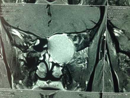 Hình ảnh khối u nhầy chèn ép thần kinh thị giác. Ảnh: Lao Động |