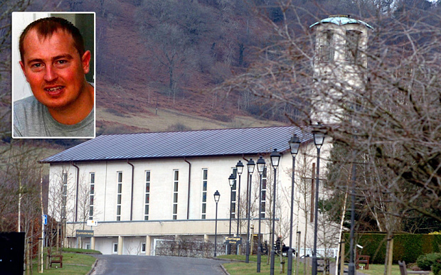 Simon Lewis và nhà thờ nơi diễn ra sự cố hy hữu. Ảnh: Telegraph |