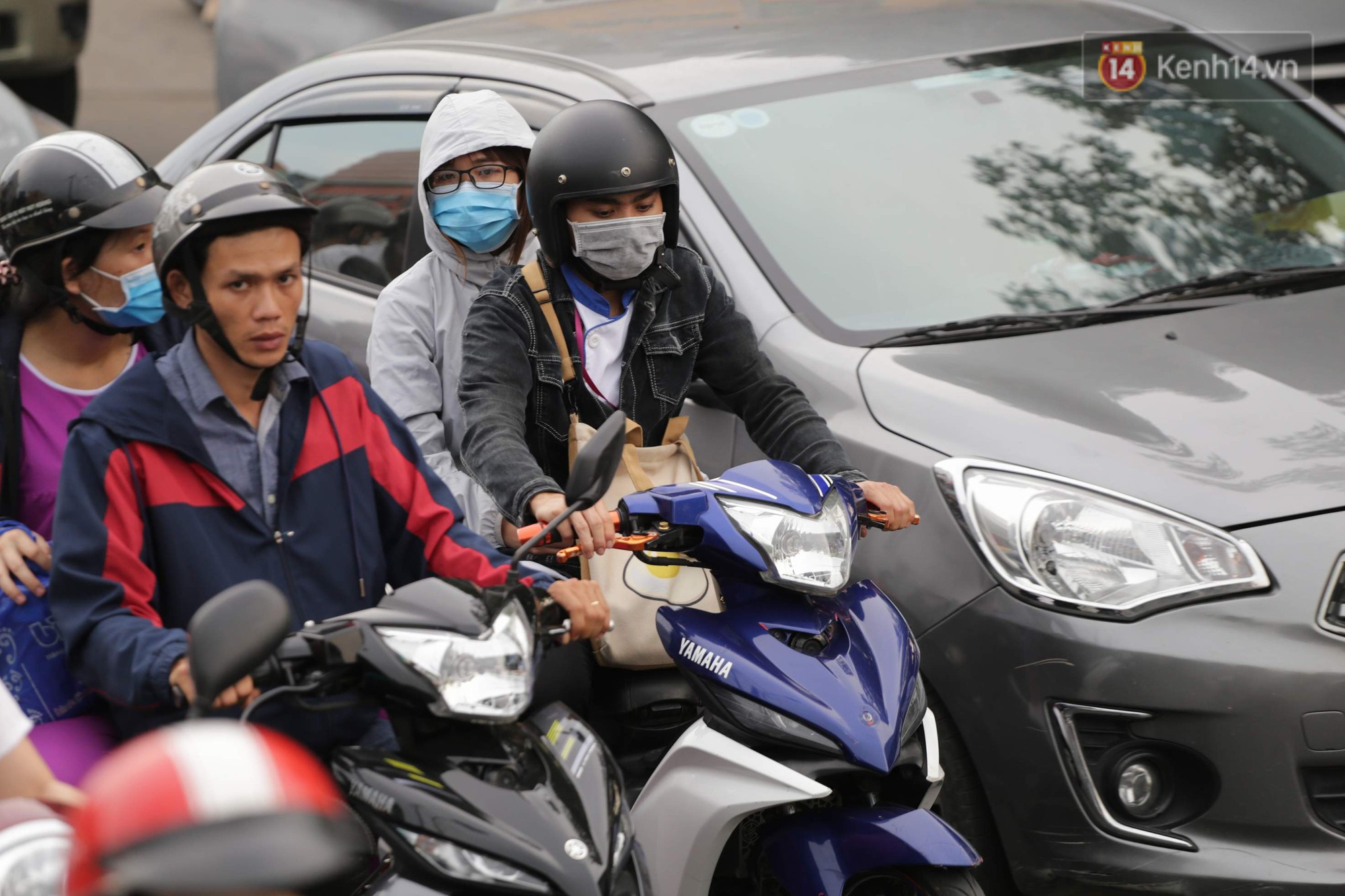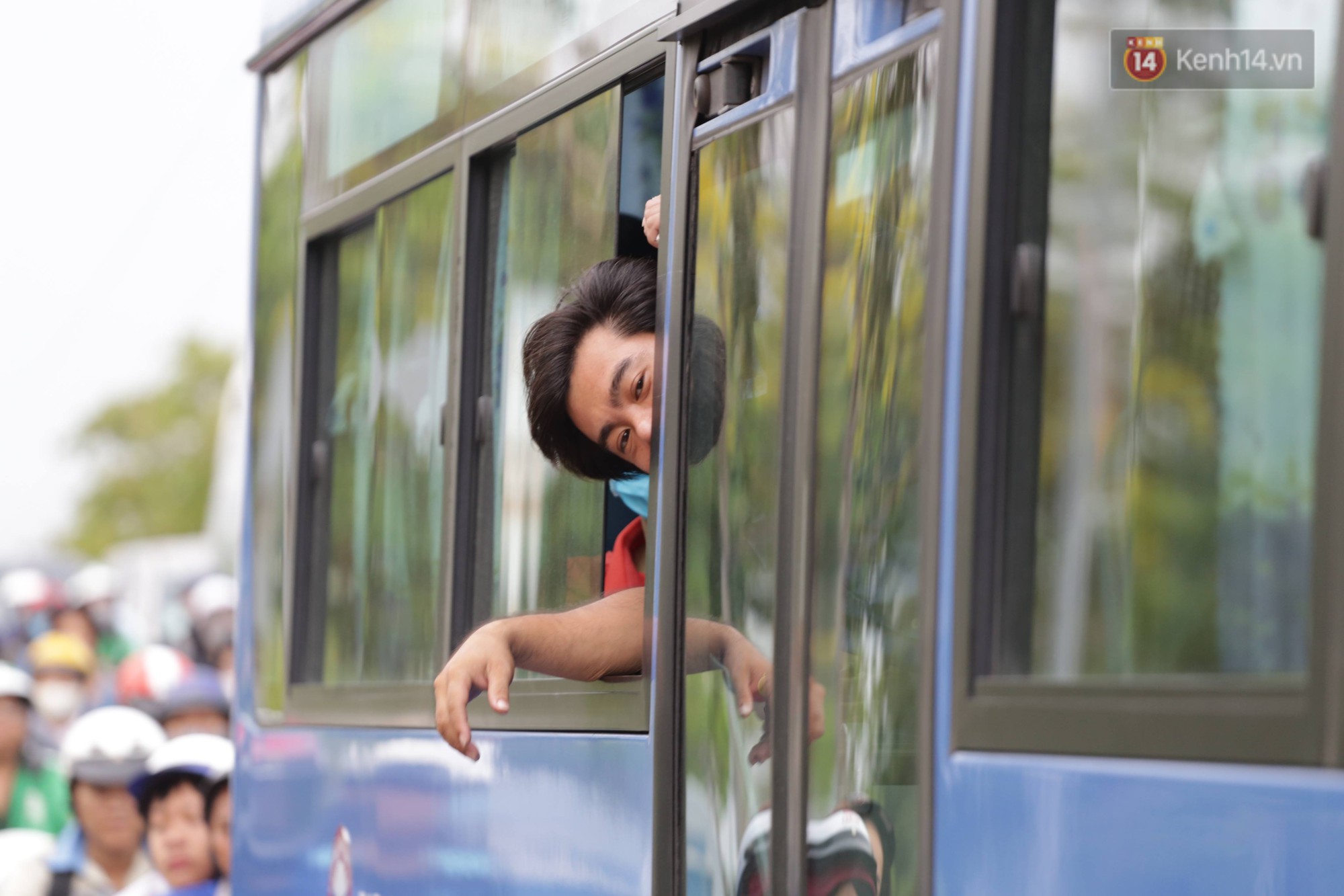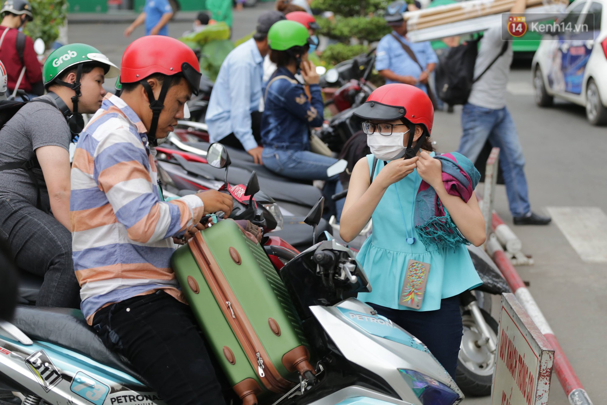 Hành khách ôm thoe đồ đạc bắt xe ôm ra bến xe để trở về quê. Ảnh: Phương Thảo