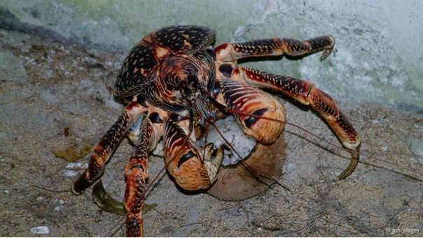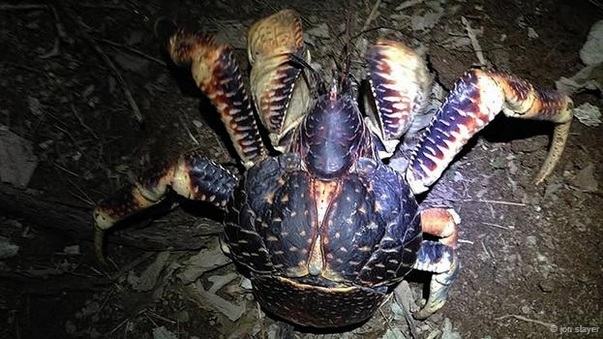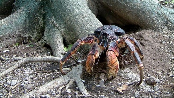 Cua dừa, loài cua đất cực lớn và mạnh mẽ. Nó có thể làm vỡ những quả dừa bằng càng của mình và thậm chí là săn lùng cả những con chuột.