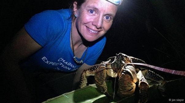 Heather Koldewey cùng một con cua dừa