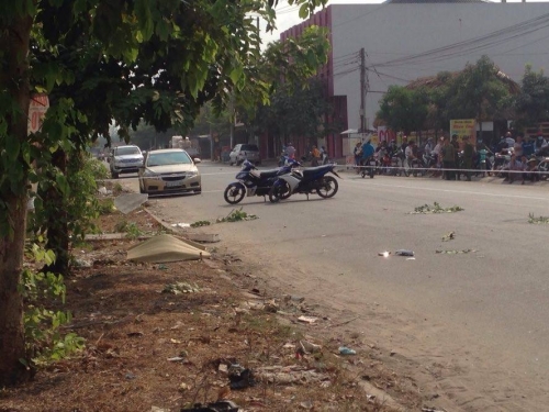 Nên đọcTại hiện trường, thi thể nạn nhân nằm trên lề đường, gần tường rào của công ty, cạnh đó là vệt máu dài cùng mảnh vỡ của xe máy (nghi là xe Air Blade).