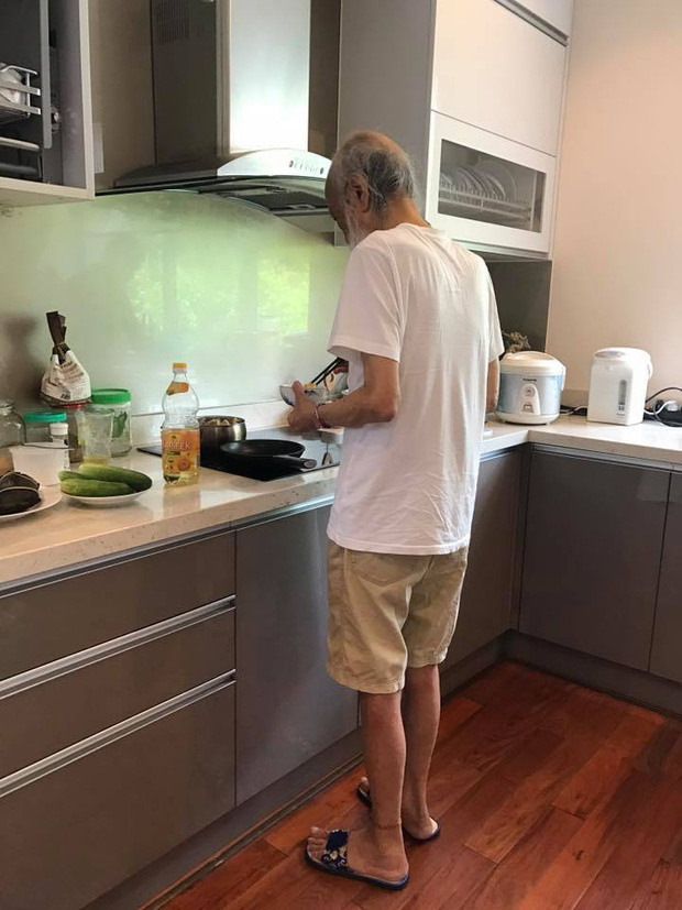 | Một bức ảnh đời thường của thầy Cương lúc sinh thời, khi thầy vào bếp nấu món trứng rán cho người vợ yêu thương. Bức ảnh được cô Dương đặt tên: "When a man love a woman" kèm dòng chia sẻ: "Vừa nói cụ ông vừa đặt chảo lên bếp, rất nhanh tay, cụ đổ dầu ăn vào chảo và giằng cái bát trứng mình đang cầm, cụ ông tháo tác rán trứng cho cụ bà ăn, gạt mình ra một bên. Mình đành lủi thủi đi ra cầm máy tác nghiệp". |