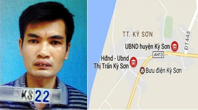 Đối tượng Nguyễn Mạnh Hùng và địa chỉ trụ sở TT Kỳ Sơn nơi Hùng gây án. Ảnh: Báo giao thông |