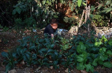 | Bà có mảnh vườn nhỏ sau nhà để trồng rau, Tiểu Long thường xuống lấy rau về rửa sạch rồi hấp cùng với cơm. Bà nói rằng luống rau nhỏ này cũng đủ cho Tiểu Long ăn rồi. |