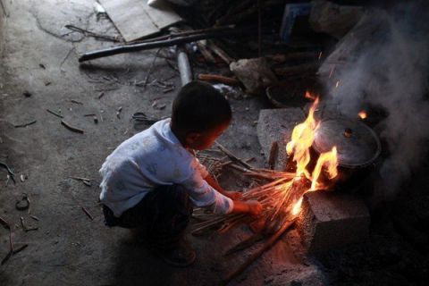 | Một lần cậu bé nấu hai lạng gạo, sau đó hấp rau để cùng ăn, chỗ cơm này một mình cậu bé ăn không hết. |