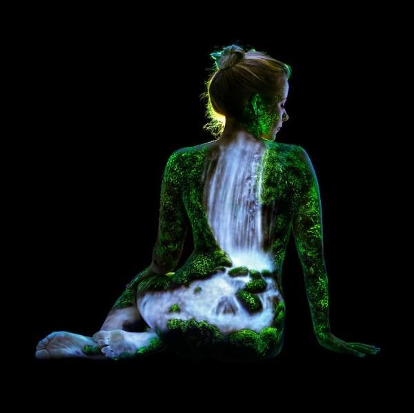 Dưới tác dụng của những hiệu ứng ánh sáng và bóng tối, những hình ảnh với bức tranh phong cảnh sống động hiện lên trên đường cong cơ thể con người đầy nhũng nét tinh tế và tạo nên tác phẩm vô cùng độc đáo.