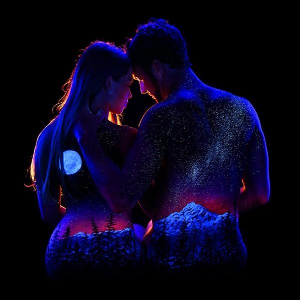 Nghệ sỹ John Poppleton đã kết hợp tình yêu hội họa và kiến thức nhiếp ảnh để tạo nên những cảnh quan tuyệt đẹp có thể phát sáng dưới ánh sáng đen. Tuy nhiên, điều đặc biệt là những bức tranh đó được vẽ trên cơ thể con người.