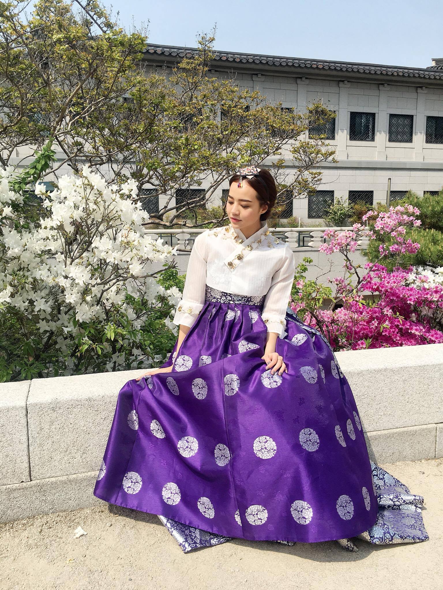 | Kiều Ngân xinh đẹp trong bộ trang phục truyền thống Hàn Quốc. |