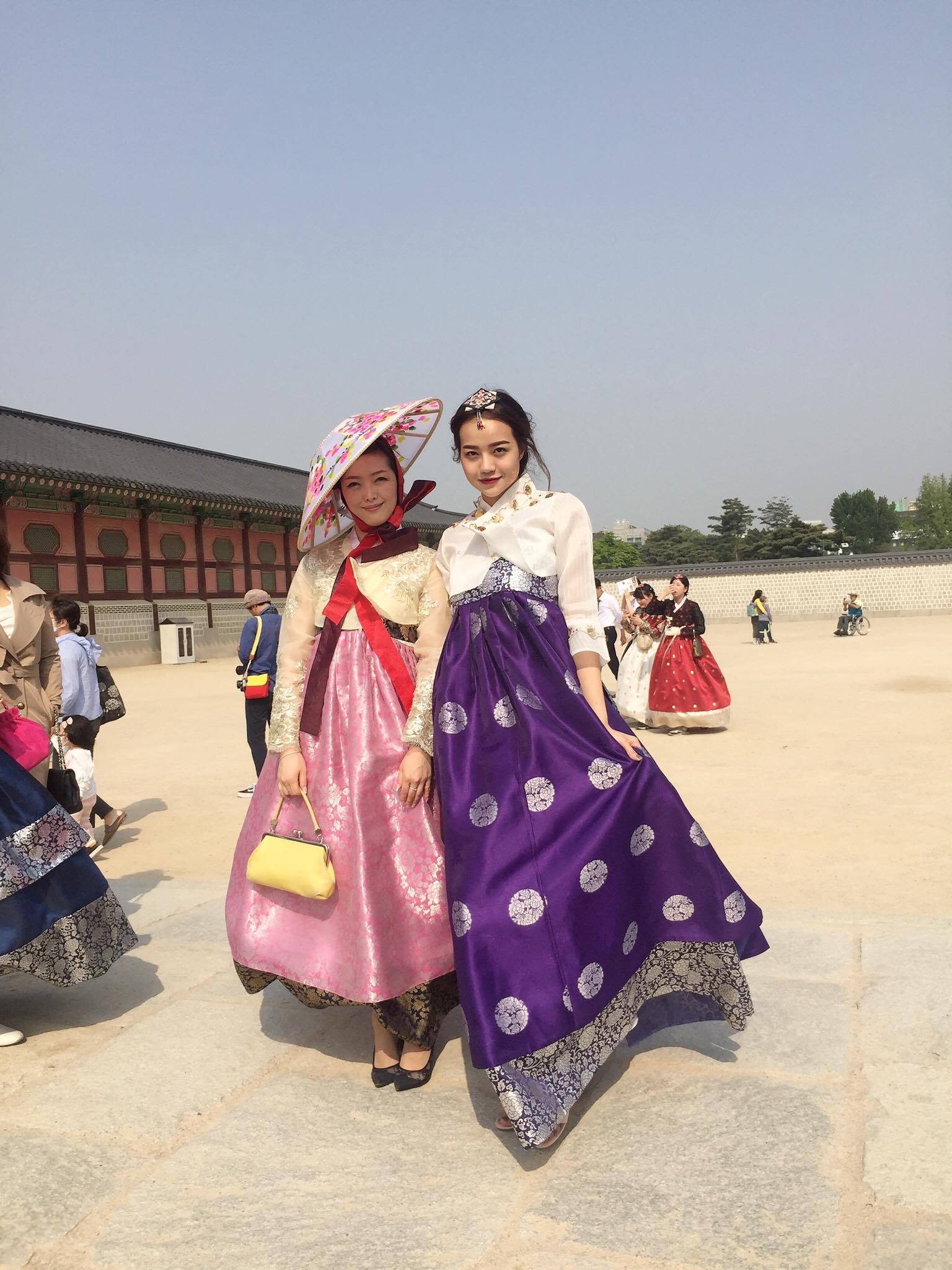 Diện trang phục truyền thống tông xanh trắng, Kiều Ngân nhận được nhiều lời khen từ những người bạn Hàn Quốc. Bởi nàng hoa hậu mặc Hanbok rất đẹp và giống với người bản xứ.