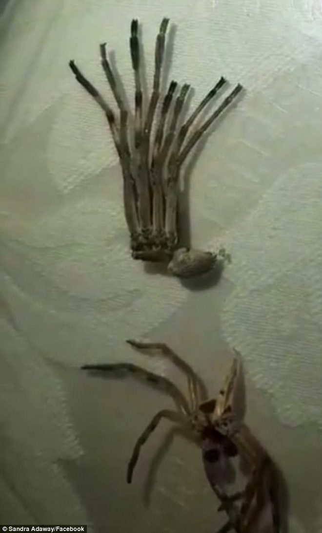 Sau khi những hình ảnh được chia sẻ, nhiều người ho biết đây có thể là một con nhện Huntsman - một trong những loài nhện lớn nhất thế giới. Giant Huntsman spider (Heterpoda maxima), là một loài nhện có chân rất dài và sống nhiều tại Úc. Chiều dài mỗi chân lên tới 30 cm với rất nhiều gai nhọn ở trên chân.