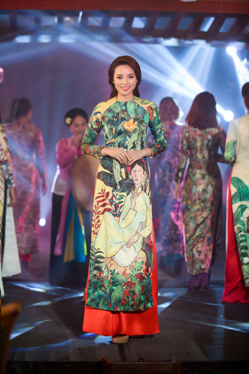 Không chỉ làm khách mời, trong chương trình, Kỳ Duyên còn đảm nhận vai trò vedette, trình diễn bộ sưu tập áo dài của nhà thiết kế Thủy Nguyễn.