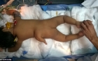 | Bé gái có chân thứ 3 mọc ở lưng. Ảnh: Daily Mail |