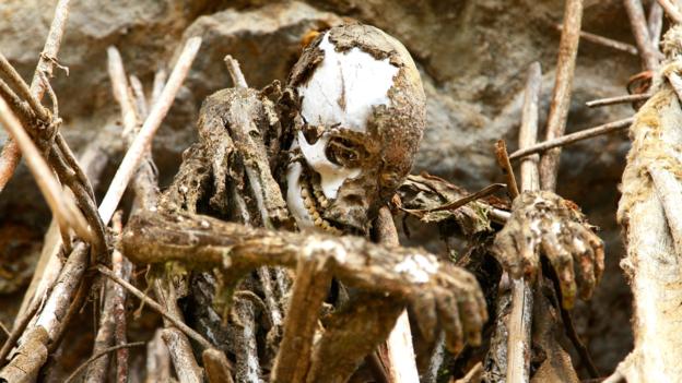Những xác ướp được để trên những thanh tre. Ảnh: BBC |