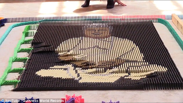 18 chuyên gia tại thành phố Westland, bang Michigan, Mỹ mất tới 1.800 giờ để xếp 25 vạn viên domino để rồi tất cả “sụp đổ” chỉ trong vài phút để tạo nên kỷ lục thế giới mới.