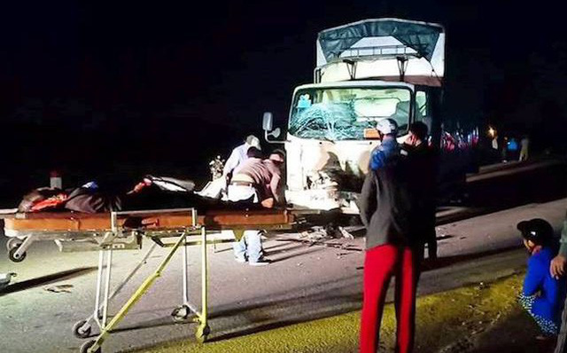 Cú đâm trực diện với xe tải khiến cả 3 nạn nhân trong một gia đình ỏ Nghệ An văng xuống đường, tử vong tại chỗ.