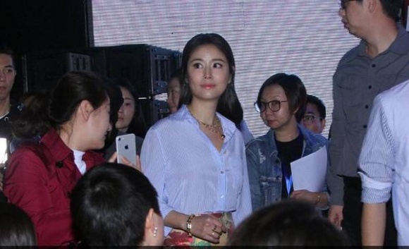 Thậm chí, nữ diễn viên còn để lộ khuôn mặt "tròn xoe" bầu bĩnh khác lạ cùng thân hình "mũm mĩm" lên trông thấy trong chiếc áo sơ mi kẻ sọc và chân váy hoa bó sát. Vẫn đôi mắt to tròn long lanh đẹp hút hồn và nụ cười rạng rỡ tươi tắn, nhưng cư dân mạng nhận xét, bà xã Hoắc Kiến Hoa lộ rõ dấu hiệu tuổi tác bởi những nếp nhăn trên mặt, đồng thời cũng dễ dàng nhận thấy cô chưa thể lấy lại vóc dáng hoàn hảo sau khi sinh con.