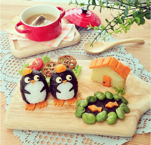 | Tạo hình ngộ nghĩnh với rau xanh để thu hút sự chú ý của trẻ. |