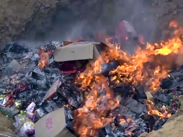 | Lực lượng chức năng tỉnh Lào Cai ngày 7.3 đã đào hố đốt hủy 30.000 gói bánh kẹo không có giấy tờ hợp pháp bị bắt từ cuối tháng 1. |
