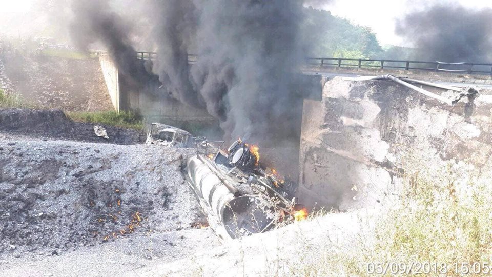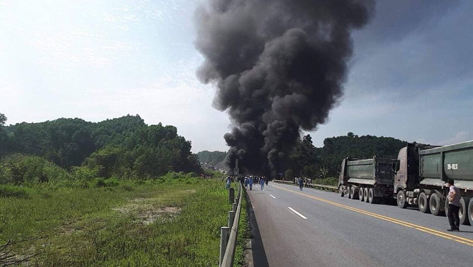 Theo đại tá Phạm Văn Hòa, Phó Trưởng phòng, Đội trưởng Đội tuần tra, kiểm soát giao thông đường bộ cao tốc số 1 (C67, Bộ Công an) cho biết, chiếc xe bồn chở hóa chất đã va chạm với xe con rồi lao xuống chân cầu.