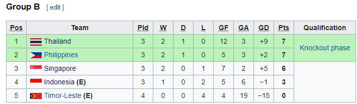 Trong khi cuộc đua vào bán kết ở bảng A đã khép lại thì cục diện của B vẫn đang khá căng thẳng bởi cả Thái Lan, Philippines lẫn Singapore đều còn khả năng đi tiếp.