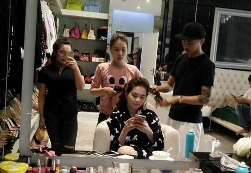 Bức ảnh Ngọc Trinh đang trang điểm trong hậu trường để lộ gương mặt hốc hác, xuống sắc nhanh chóng thu hút sự chú ý cư dân mạng.