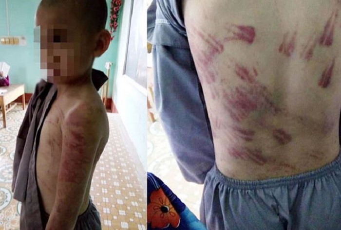 | Hình ảnh cháu bé bị sư thầy bạo hành. Ảnh Dân Trí |