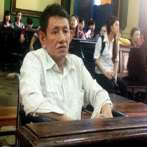 Trên chiếc xe lăn, Huỳnh Tòng Vương (SN 1957, ngụ quận 8, TP.HCM) trông lọt thỏm giữa phòng xử án. Thân hình nhỏ bé, vẻ mặt khắc khổ, lưng Vương bị co rút, còng lại vì bị gãy cột sống do Tai nạn giao thông trước đó. Vì lý do sức khỏe, Vương được ngồi để trả lời thẩm vấn.