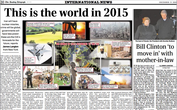 | Lời tiên đoán của CIA về thế giới năm 2015 được đưa ra từ năm 2000. Ảnh: Telegraph |