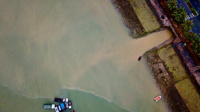 Dải nước màu nâu kéo dài hàng chục km ven bờ vịnh Hạ Long. Ảnh: Thanh Niên |