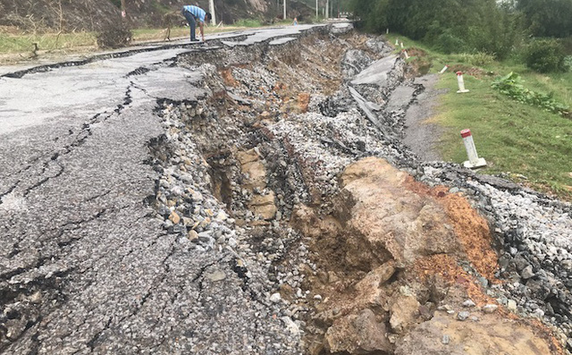 "Sáng sớm đi qua chúng tôi thấy có một đường nứt, khi đi về đã không thấy đường đâu nữa, nó sạt lở hết. Cũng may lúc đó không có người hay phương tiện nào đi qua. Chưa biết nguyên nhân nên chúng tôi đi qua đây cũng sợ lắm", một người dân sống gần đoạn đường bị sạt lở chia sẻ.