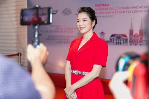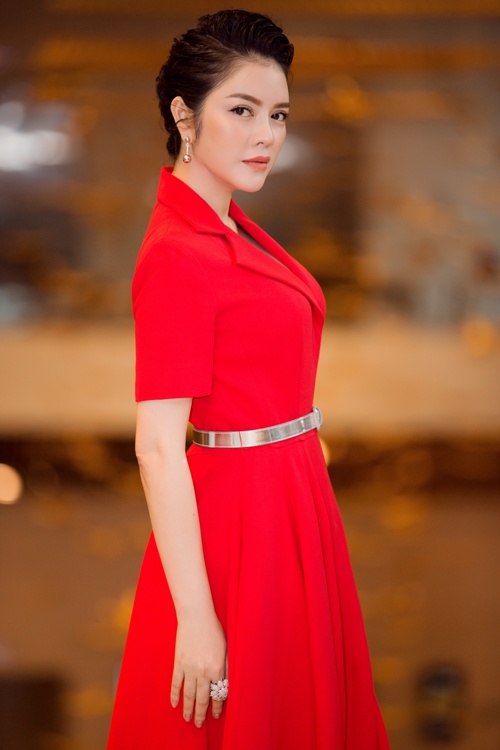 Nữ diễn viên "Mùa hè lạnh" mặc đầm đỏ nổi bật khoe vóc dáng thanh lịch. |