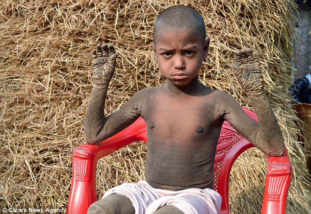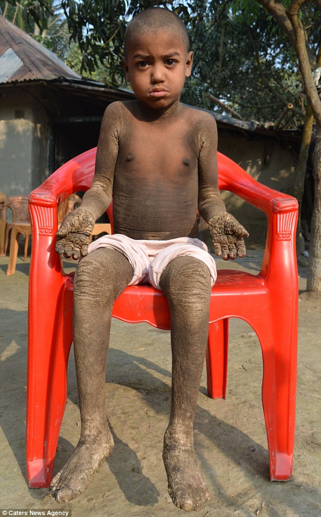 Làn da sần cứng này còn khiến cậu bé gặp khó khăn khi mặc quần áo do quần áo cọ sát vào khiến cậu bé đau đớn.