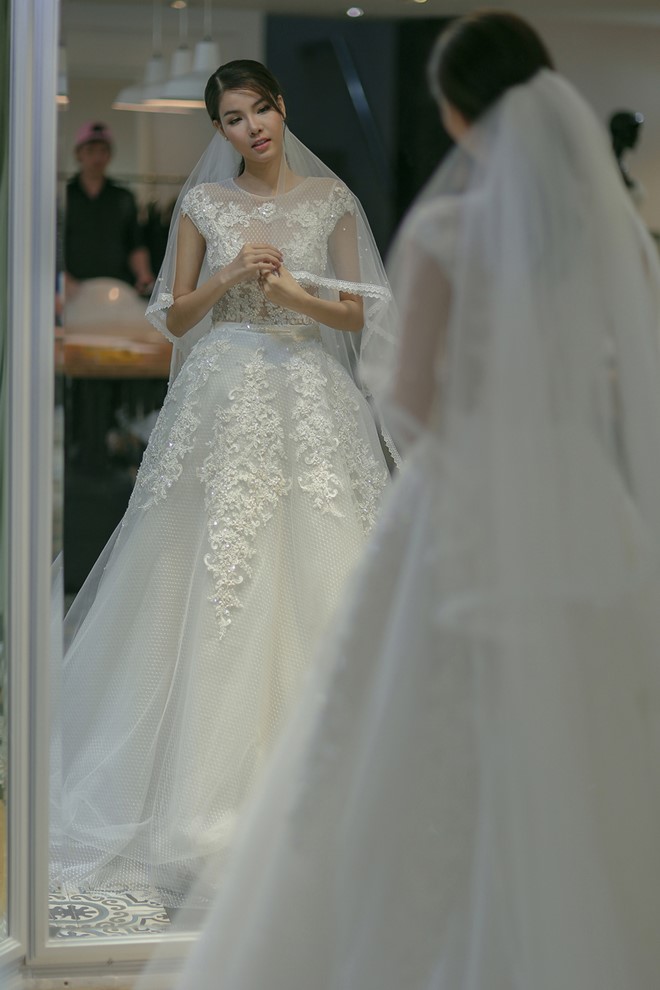 Những mẫu thiết kế được làm toàn bộ bằng vải ren cao cấp nhập từ Pháp, được tất bật làm trong 1 tháng để chuẩn bị cho ngày cưới.