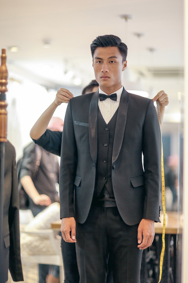 | Kỳ Hân chu đáo lựa chọn những bộ âu phục cho Mạc Hồng Quân thử. |