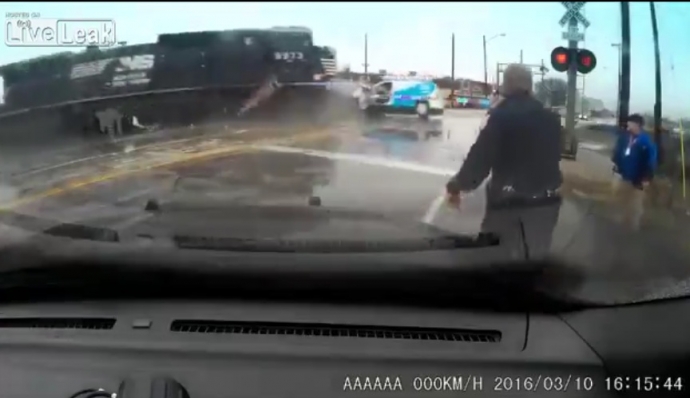 Sự việc xảy ra tại bang Ohio, Mỹ, một chiếc xe cảnh sát đang trên đường về trụ sở đã bị chết máy và mắc kẹt gần đường ray. Đúng thời điểm đó, đoàn tàu lao tới và đâm nát chiếc xe. Được biết, trước khi vụ tai nạn xảy ra, người cảnh sát trên xe đã kịp thời lao ra khỏi xe.[mecloud]Id6tbSK3Kp[/mecloud]