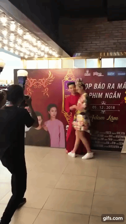 Trong lúc đang tạo dáng chụp ảnh cùng ca sĩ Adam Lâm, phần background do dựng quá lỏng lẻo đã đổ xuống khiến Mai Ngô té sấp mặt. Nhanh chóng sau đó, Mai Ngô đã được đỡ đứng dậy, người đẹp khá vui vẻ trước sự cố này chứ không hề cau có, khó chịu.