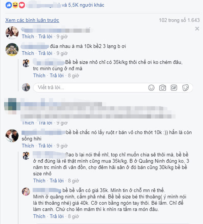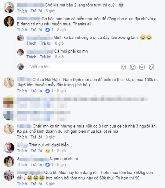 Trái ngược với những ý kiến trên, có nhiều thành viên bênh vực chị T.H. rằng giá cả mỗi nơi mỗi khác. Thậm chí có một bạn khẳng định chỉ có ở Hải Hậu, Nam Định mới có đồ biển rẻ như vậy. Chỉ với 100.000 đồng là có thể mua đc gần 2 ký tôm thuyền (bề bề) mẩy đầy trứng.