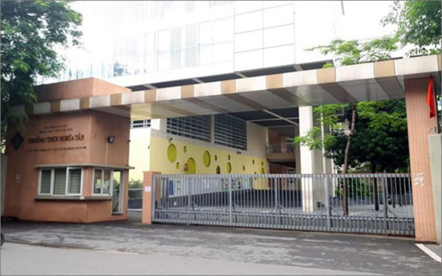 | Trường THCS Nghĩa Tân, quận Cầu Giấy, Hà Nội - nơi có 4 học sinh đốt cồn khiến 1 em bị bỏng ở phần lưng và chân |