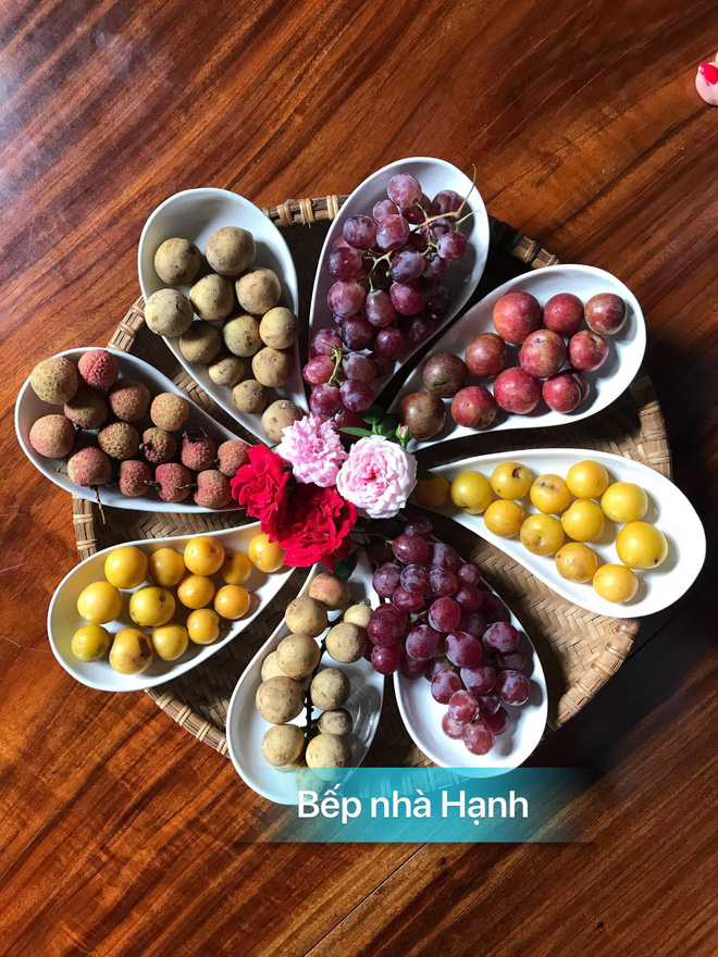 Chị Hạnh cũng khiêm tốn, cho biết: "Mình không có thời gian cắt tỉa hoa cầu kì nhưng luôn cố gắng trình bày mâm cơm cho thật hấp dẫn. Đặc biệt, mình thường xuyên thay đổi thực đơn để chồng, con không bị chán. Mình cũng hay nấu những món dân dã đơn giản, còn những món cầu kì cần nhiều thời gian thi thoảng mình mới làm. Khi đó, mình phải chuẩn bị nguyên liệu trước từ tối hôm trước. Vào những dịp lễ mình thích mời bạn bè, họ hàng đến nhà và tự nấu đãi khách."