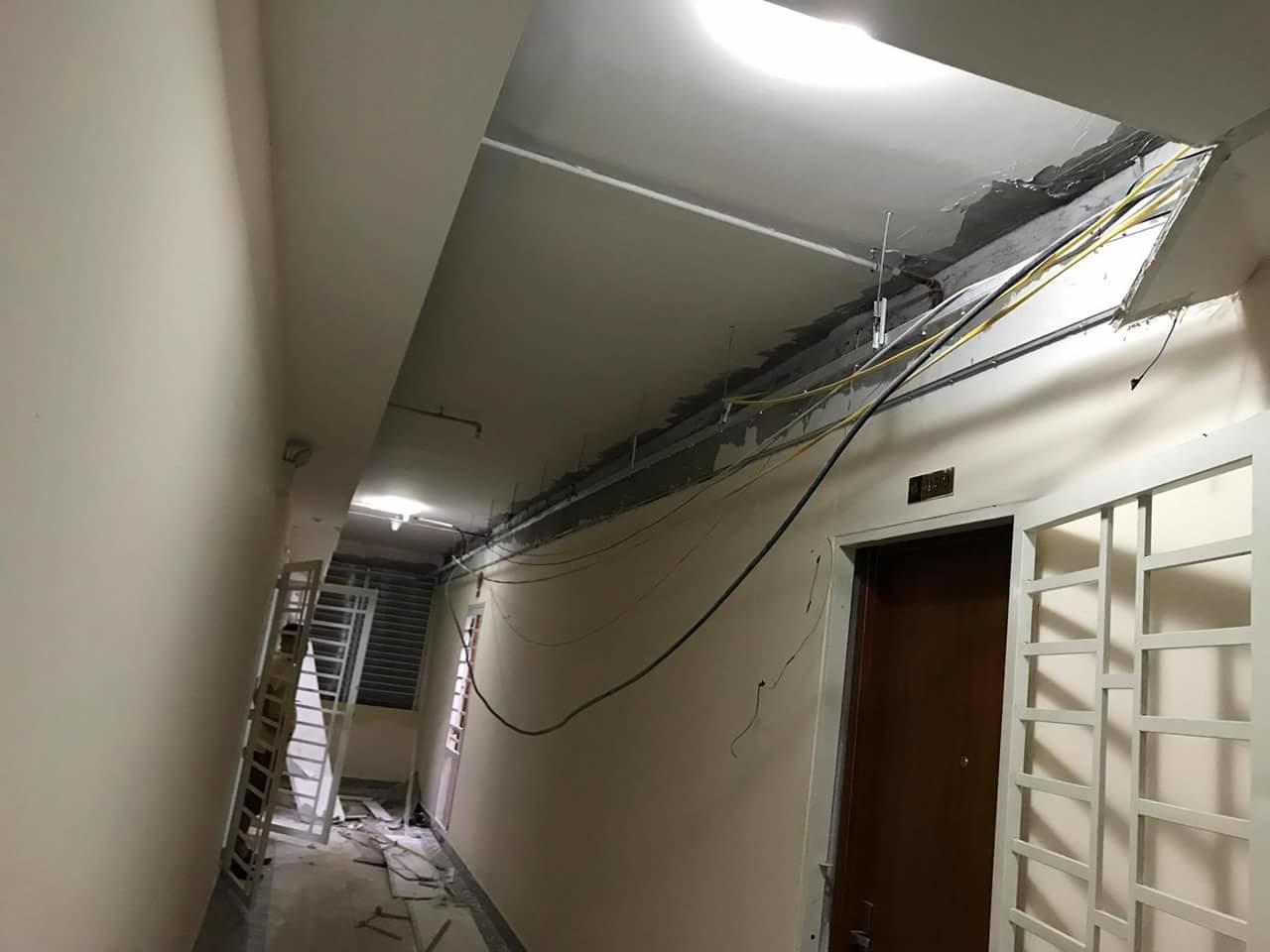 | Phần thạch cao đổ sập tại hành lang tầng 5, block 3, chung cư Tecco Green Nest |