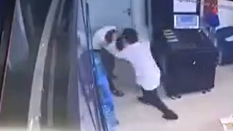 Sau khi nghe thấy tiếng gõ cửa, nữ nhân viên bảo vệ liền đứng dậy đi ra. Vừa mở cửa thì nạn nhân bất ngờ bị một thanh niên say rượu lao vào đánh đấm.