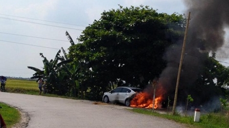 Thấy chiếc xe 5 chỗ hiệu Kia rio bốc cháy bên đường, nhiều người hiếu kỳ dừng lại xem rồi quay phim, chụp ảnh nhưng không có bất cứ ai đến giúp dập lửa giúp chủ xe (người không có mặt tại đó).