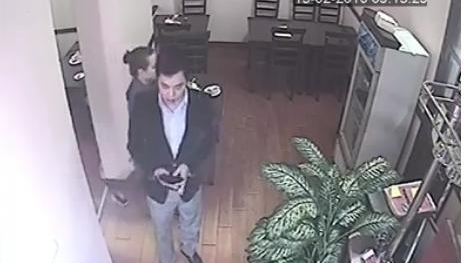 Một nam thanh niên mặc vest khá lịch sự, sau khi trả tiền xong, người này ngó nghiêng quan sát thấy chủ quán sơ hở đã "chôm" chiếc iphone trên bàn thanh toán.