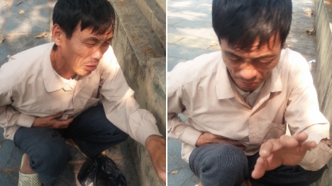 Khuôn mặt nhăn nhó, người đàn ông ôm bụng tỏ vẻ đau đớn ngồi bệt xuống vìa hè. Nhưng khi có người hỏi thăm, đề nghị giúp đỡ, người này từ chối.
