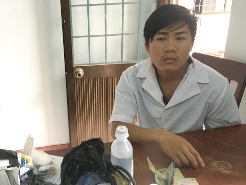 | Đối tượng Thắng cùng tang vật bị thu giữ |