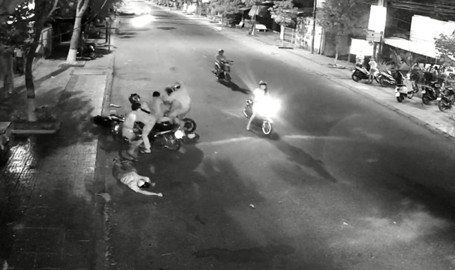 Nạn nhân bị đánh gục trên phố - Ảnh cắt từ clip/ Tri thức trực tuyến |