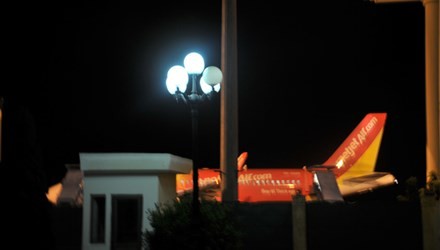 Một nữ nhân viên trực tổng đài sân bay Vinh cho hay, chuyến bay mang số hiệu 8634 của hãng Vietjet Air xuất phát tại Tân Sơn Nhất lúc 19h30 ngày 2/8, đến 21h20 mới hạ cánh được xuống sân bay Vinh.