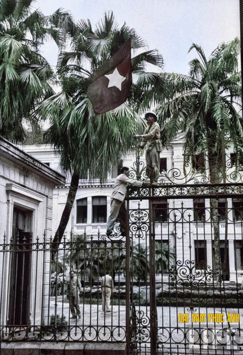 Thay cờ trên cổng tòa nhà Bắc Bộ Phủ vừa tiếp quản.